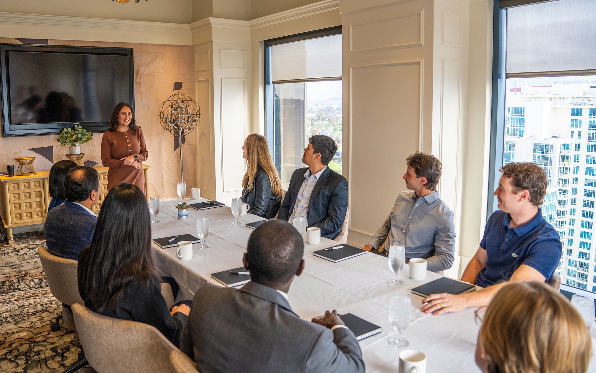 Reimagined with a fresh, modern coastal vibe, the Club offers an unmatched backdrop for every occasion. Perched on the 34th floor of Symphony Towers, our Club delivers 180° views of downtown and the Pacific, setting the stage for extraordinary experiences.